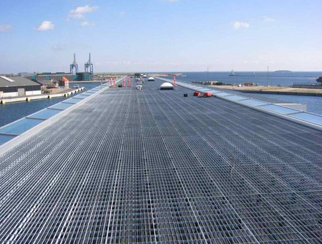 碼頭鋼格柵板 1:高強(qiáng)度,輕結(jié)構(gòu) 2:防腐能力強(qiáng),經(jīng)久耐用 3:外形美觀,表面亮澤 4:不積污物,不積雨雪,不積水,自清潔,易于維護(hù) 5:通風(fēng),采光,散熱,防滑,防爆性好 ···